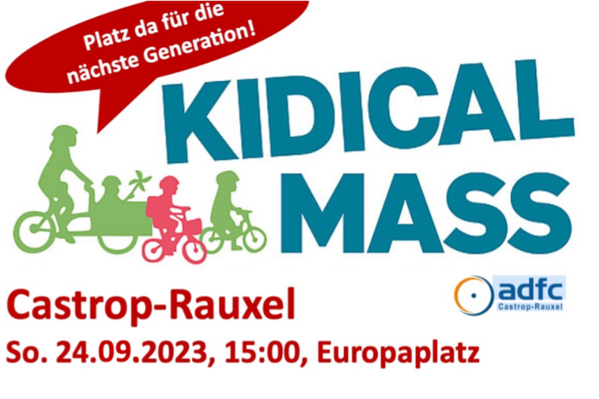 "Mehr Platz fürs Rad" und "Straßen sind für ALLE da" gilt vor Allem auch für Kinder. Deshalb jetzt auch die erste KIDICAL MASS (Familien-Fahrraddemo) in Castrop-Rauxel.